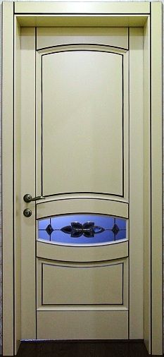 Дополнительной роскоши этим дверям придаёт авторское стекло и нестандартаня фурнитура с оттенками бронзы или старой меди.