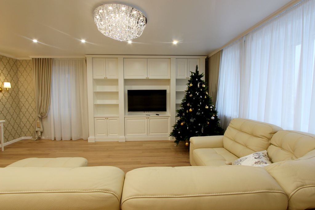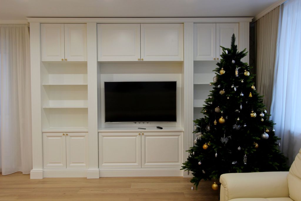 Мы закончили монтаж этой стенки из массива дерева как раз в канун Нового года.